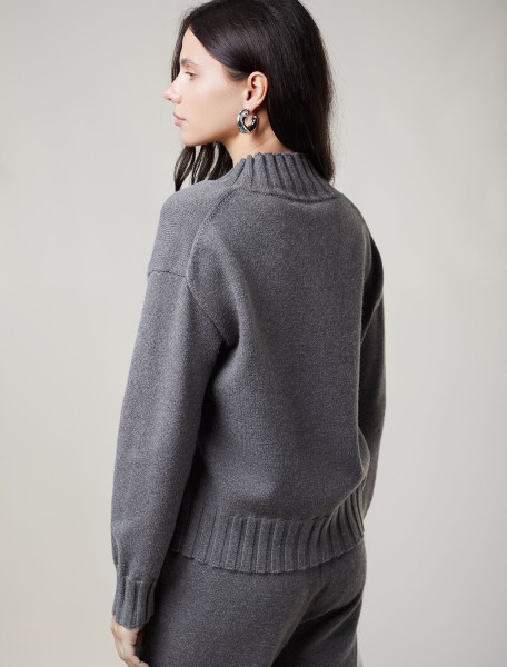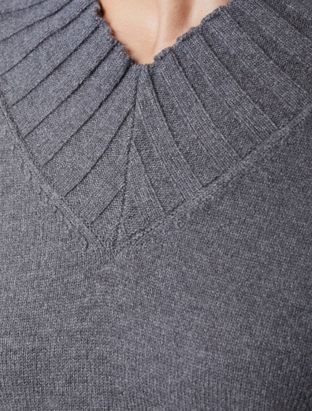 Джемпер выполнен из мягкой пряжи с кашемиром. Изделие дополнено высоким V-вырезом с широкой рибаной. Мягкая пряжа очень приятная к телу, поддержит комфорт на протяжении всего дня, при этом не перегревая. Сочетается в костюме с брюками D38.013, D38.012 и юбкой D36.016