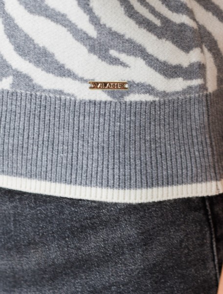 Джемпер жаккардовой вязки выполнено из нежной пряжи на основе вискозы с добавлением кашемира. Модель прямого силуэта с застежкой планкой как у поло. Фигурные золотистые пуговицы вносят изысканности и роскоши. Изделие приятно ощущается на теле и поддерживает комфортный микроклимат. Сочетается в комплекте total-look с жакетом D31.150