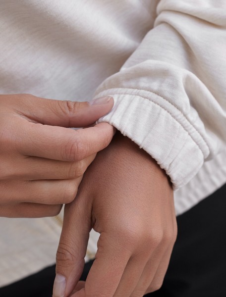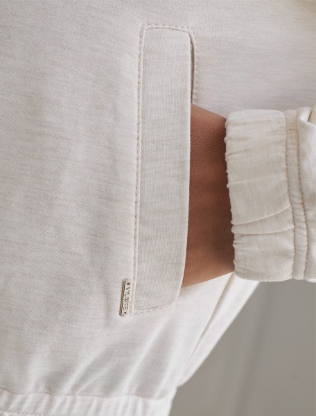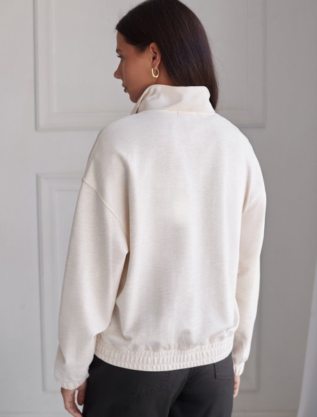Свободный бомбер бежевого цвета с эффектом меланж на молнии выполнен из премиального футера двухнитки без начеса, обеспечивает мягкость и комфорт при носке. Натуральный состав обеспечивает дышащий эффект, мягкость и приятные тактильные ощущения, Эластичный материал позволяет свободно двигаться без лишнего стеснения, а также отлично сохраняет форму даже после длительного ношения. Высокий воротник, манжеты на рукавах и резинка по низу обеспечивают надежную посадку, сохраняя тепло в прохладную погоду. Оверсайз бомбер отличается спущенной линией плеч и универсальной длиной, которая идеально подходит для повседневного и спортивного образа. Прорезные карманы по бокам добавляют функциональности, сохраняя при этом стильный внешний вид. Бомбер из футера украшен деликатной вышивкой в виде эмблемы бренда, которая придает особый шарм и подчеркивает индивидуальность владелицы. Такой изысканный элемент декора гармонично сочетается с лаконичным дизайном, отвечая современным тенденциям моды. Так же на одном из карманов ра