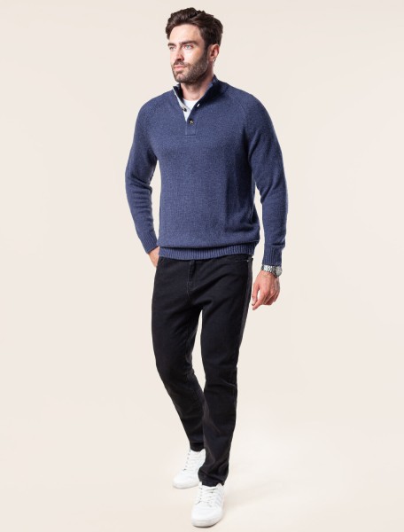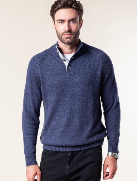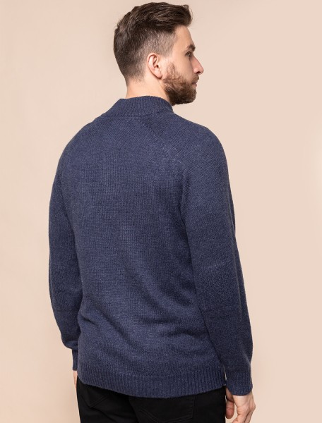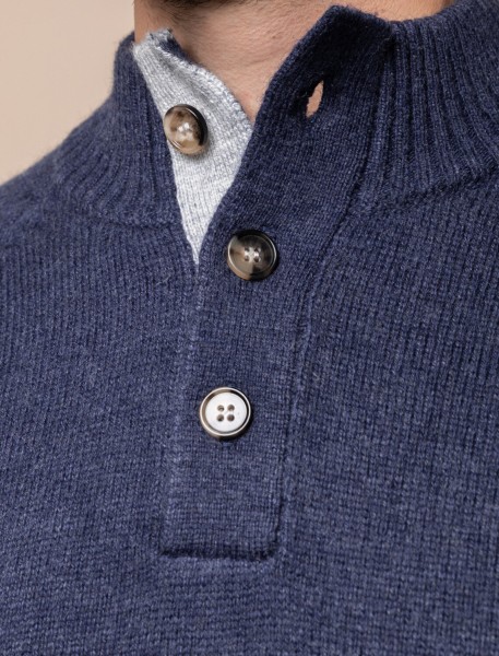 Свитер плотной вязки с застежкой на акцентные черепаховые пуговицы. Модель выполнена из теплой пряжи с шерстью. Внутри стойки контрастная пряжа, с помощью пуговиц можно регулировать высоту воротника и носить свитер как джемпер. Гармонично дополнит как повседневный образ, так и нестрогий офисный комплект, с рубашками, футболками или водолазкой. Модель дополнена фирменным логотипом бренда.