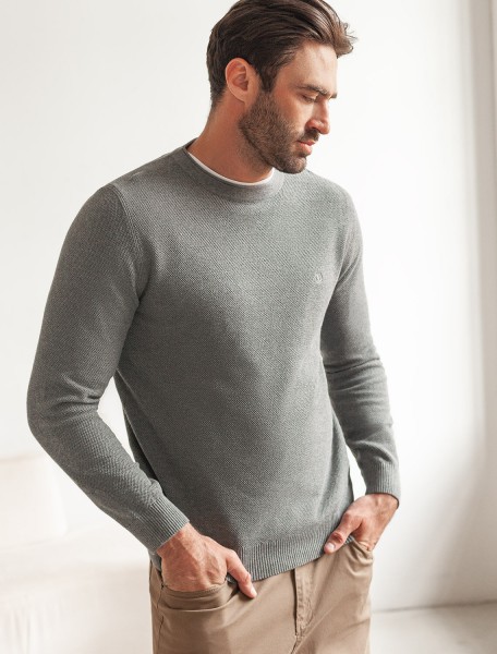 Джемпер фактурной вязки «оксфорд» выполнен из хлопковой пряжи с добавлением нейлона. Модель с круглым воротом дополнена вышитым логотипом бренда и классическим металлическим лого. Изделие гармонично впишется в образ как с брюками, так и с джинсами. Вторым слоем к контрастной футболке. Хлопковая пряжа хорошо сохраняет тепло при этом, не перегревая тело. Нейлон в составе способствует формоустойчивости.