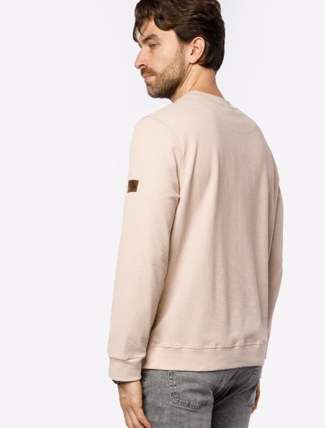 Свитшот выполнен из мягкого хлопкового футера. Модель с круглой горловиной дополнена авторским принтом и нашивкой из эко-кожи с логотипом бренда. Наличие эластана в составе изделия гарантирует формоустойчивовсть и долговечность.