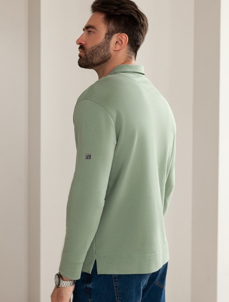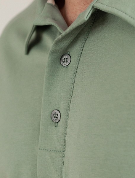 Стильный лонгслив светло-оливкого цвета с воротником поло выполнен из премиального хлопка в сочетании с эластаном . Натуральная ткань обеспечивает легкость, воздухопроницаемость и приятные тактильные ощущения даже когда жарко, позволяет не перегреваться и поддерживает комфортный микроклимат в течение всего дня. Удобный отложной воротник на аккуратных пуговицах делает образ современным и стильным, а длинный рукав защищает руки при ветреной погоде. Поло хорошо садится по фигуре благодаря добавлению эластичных волокон — такой вариант подходит для мужчин любого роста и размеров, не стесняет движений и создает ощущение свободы и легкости.