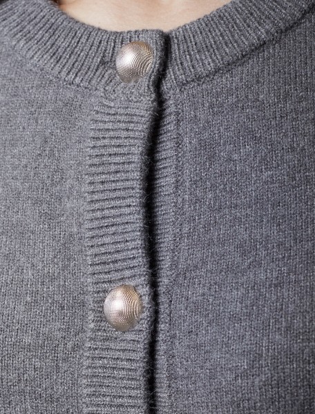 Кардиган выполнен из мягкой меланжевой пряжи с добавлением кашемира. Модель прямого силуэта гармонично впишется в любой образ с брюками, юбками и джинсами. Застежка на пуговицы в жемчужно-золотистом оттенке. Изделие очень приятное к телу, совершенно не колется и отлично сохраняет тепло. Сочетается в костюме с брюками D38.013, D38.012 и юбкой D36.016