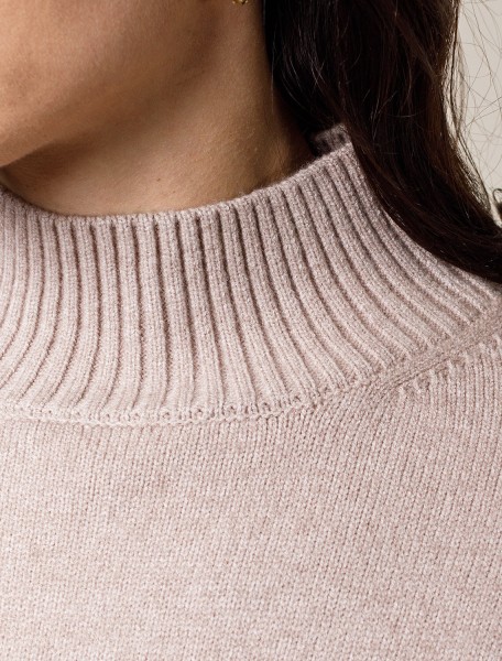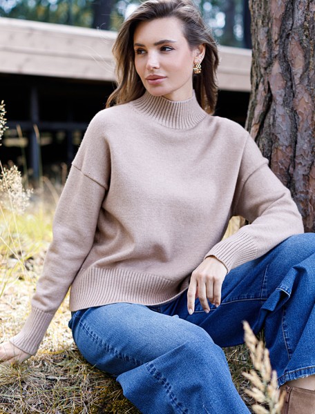 Джемпер с воротом стойка выполнен из мягкой меланжевой пряжи с кашемиром. Лаконичная модель со спущенным плечом поддержит любой образ с брюками или юбкой. Мягкая пряжа очень приятная к телу, поддержит комфорт на протяжении всего дня. Сочетается в костюме с брюками D38.013, D38.012 и юбкой D36.016