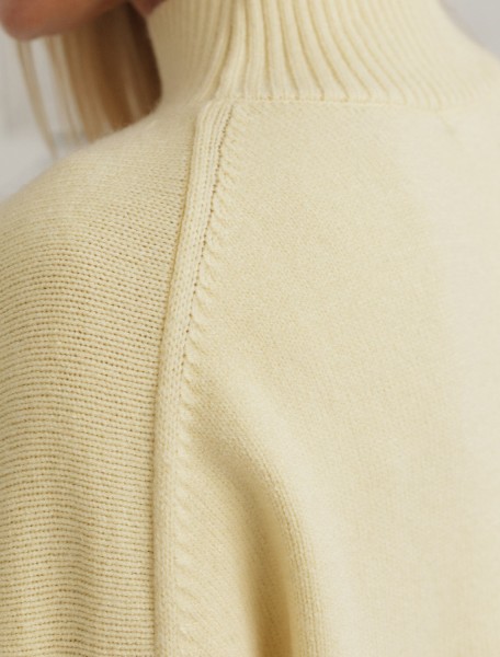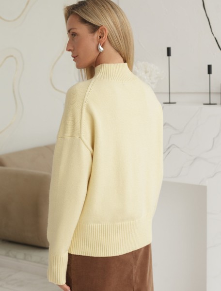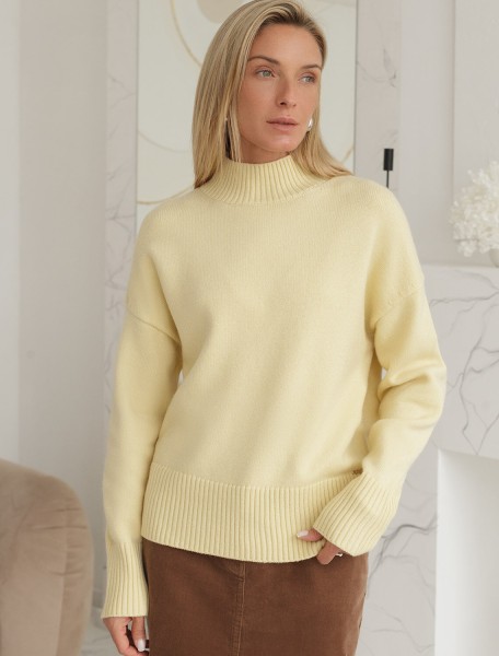 Джемпер с воротом стойка выполнен из мягкой пряжи с кашемиром. Лаконичная модель со спущенным плечом поддержит любой образ с брюками или юбкой. Мягкая пряжа очень приятная к телу, поддержит комфорт на протяжении всего дня. Сочетается в костюме с брюками D38.013, D38.012 и юбкой D36.016