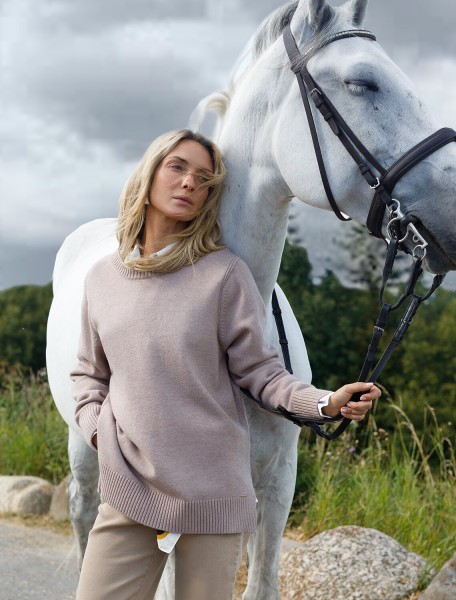 Джемпер с круглым воротом выполнен из мягкой меланжевой пряжи с кашемиром. Лаконичная модель свободного силуэта дополнена боковыми разрезами. Мягкая пряжа очень приятная к телу, поддержит комфорт на протяжении всего дня. Сочетается в костюме с брюками D38.013, D38.012 и юбкой D36.016