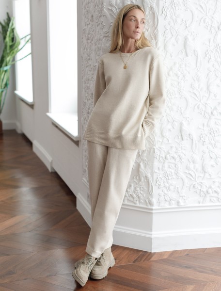 Джемпер с круглым воротом выполнен из мягкой меланжевой пряжи с кашемиром. Лаконичная модель свободного силуэта дополнена боковыми разрезами. Мягкая пряжа очень приятная к телу, поддержит комфорт на протяжении всего дня. Сочетается в костюме с брюками D38.013, D38.012 и юбкой D36.016