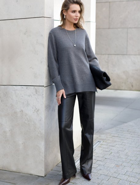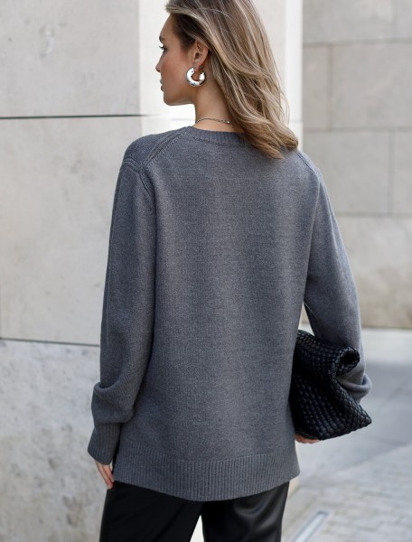 Джемпер с круглым воротом выполнен из мягкой меланжевой пряжи с кашемиром. Лаконичная модель свободного силуэта дополнена боковыми разрезами. Мягкая пряжа очень приятная к телу, поддержит комфорт на протяжении всего дня. Сочетается в костюме с брюками D38.013, D38.012 и юбкой D36.016