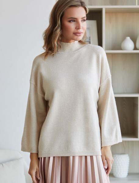 Джемпер выполнен из мягкой пряжи с кашемиром. Фишкой изделия являются свободные рукава на одном уровне с низом, это выгодно подчёркивает силуэт визуально вытягивая его. Мягкая пряжа очень приятная к телу, поддержит комфорт на протяжении всего дня, при этом не перегревая. Сочетается в костюме с брюками D38.013, D38.012 и юбкой D36.016