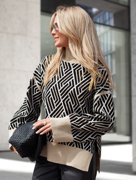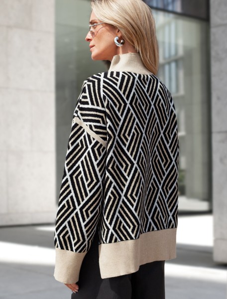 VILATTE Свитер D34.207 черный-бежевый