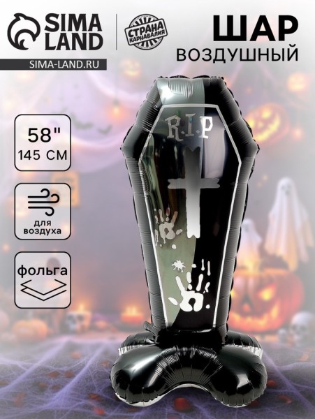 Воздушный шар фольгированный 58" «Чёрный гроб на подставке», под воздух