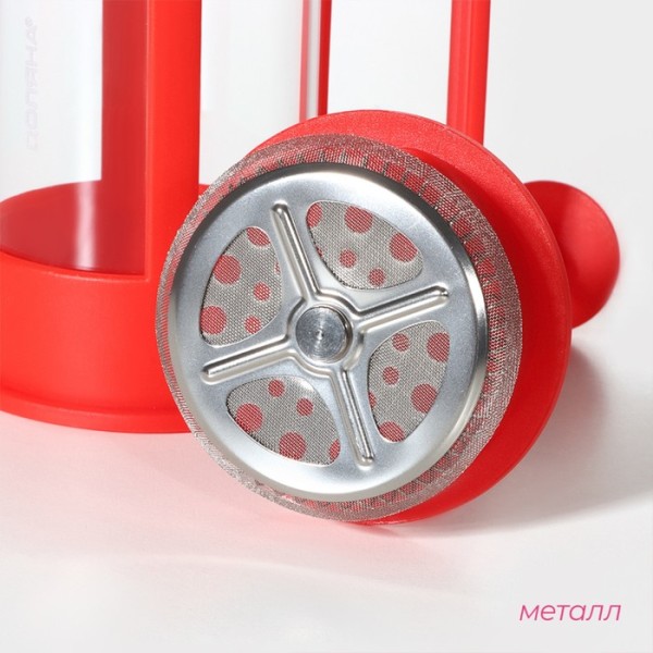Заварочный чайник френч-пресс Доляна «Классика», 350 мл, стекло, красный