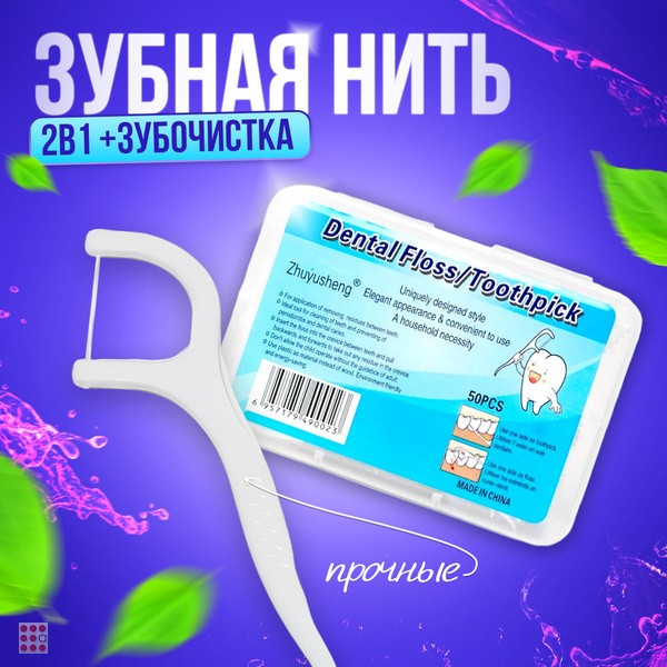 Зубная нить с зубочистками Флоссер - это незаменимый помощник в поддержании гигиены полости рта. Она сочетает в себе две функции: зубная нить и зубочистки.Зубная нить Флоссер обеспечивает эффективное очищение межзубных промежутков от остатков пищи и зубного налета. Благодаря своей гибкой структуре, она легко проникает в труднодоступные места, обеспечивая тщательное очищение.Зубочистки в составе зубной нити Флоссер позволяют быстро и легко удалять остатки пищи из межзубных промежутков и труднодоступных мест. Это особенно актуально для тех, кто не может использовать зубную нить из-за ее отсутствия или сложности использования.Зубная нить с зубочистками Флоссер изготовлена в Китае, стране, известной своими качественными и доступными товарами для здоровья.В целом, зубная нить с зубочистками Флоссер - это удобный и эффективный инструмент для поддержания гигиены полости рта. Она сочетает в себе две функции, обеспечивая тщательное очищение и быстрое удаление остатков пищи из межзубных промежутков.
